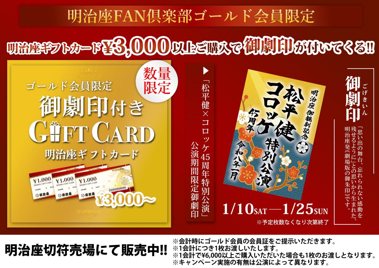 <明治座FAN倶楽部ゴールド会員限定>御劇印付明治座ギフトカード販売決定!
