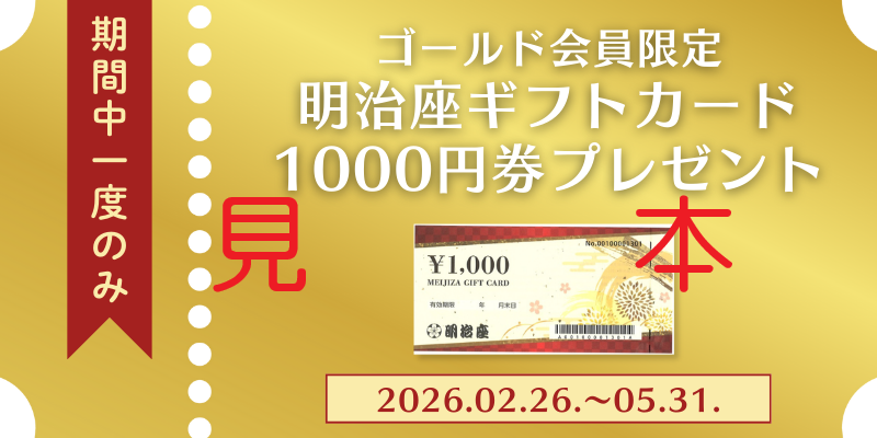 【ゴールド会員限定】明治座ギフトカード1,000円分プレゼント!新規ご入会でWチャンスも!~5/31(日)【明治座FAN倶楽部リニューアルキャンペーン】
