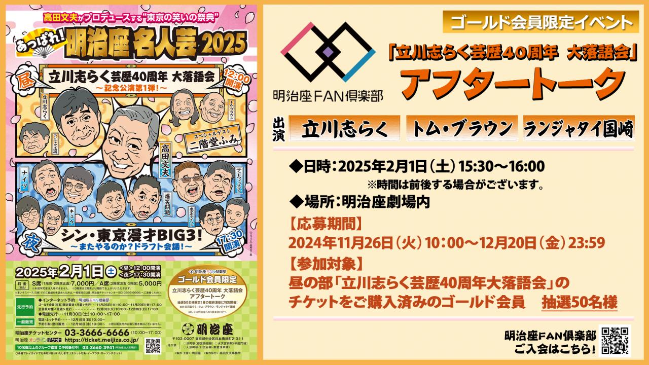 「あっぱれ!明治座名人芸2025」昼の部「立川志らく芸歴40周年大落語会」のチケットをご購入済みのゴールド会員様