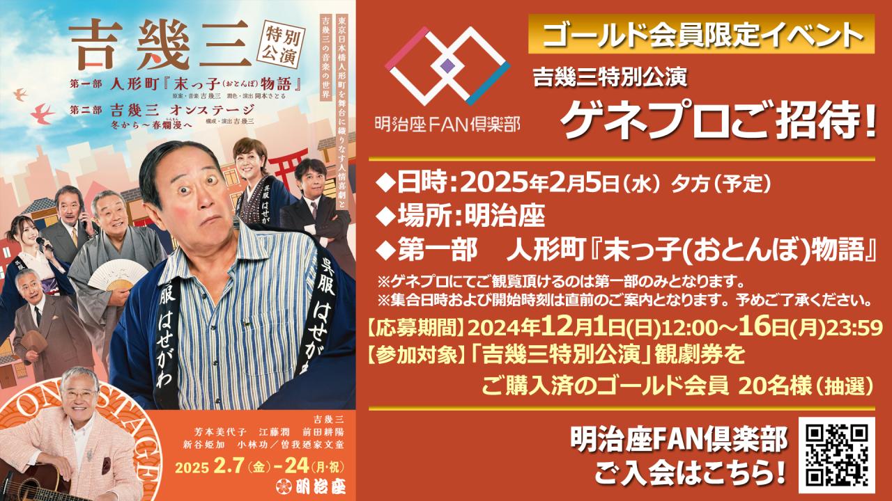 明治座FAN倶楽部 ゴールド会員20名様を抽選でご招待いたします!