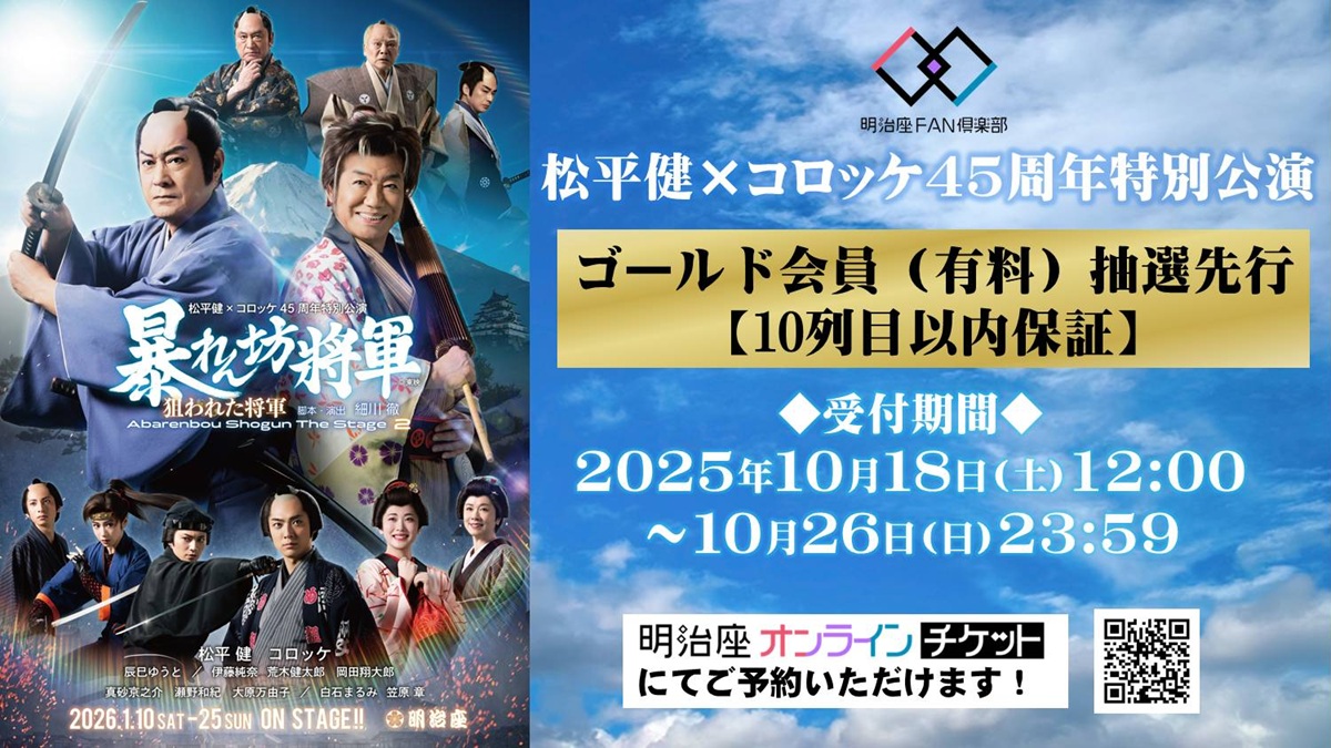 ※受付終了※『松平健×コロッケ45周年特別公演』ゴールド会員抽選先行ただいま受付中!【10列目以内保証】
