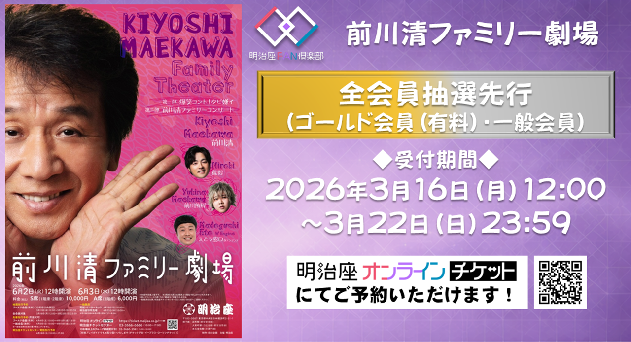 ※受付終了※『前川清ファミリー劇場』全会員対象抽選先行受付中!