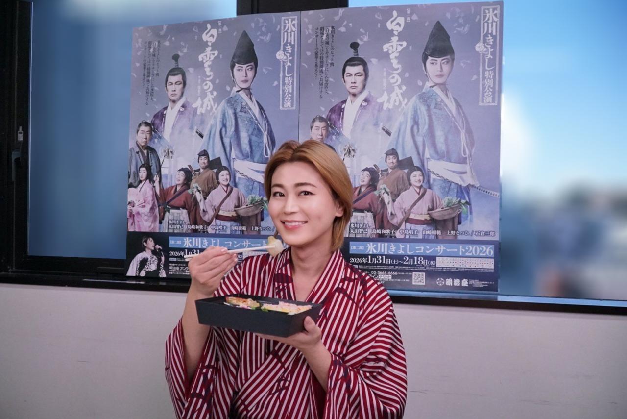 公演限定弁当「氷川きよしの冬の宝箱」の試食の様子をお届け!