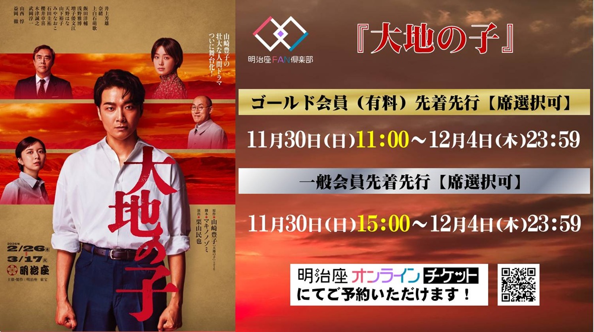 ゴールド会員(有料)・一般会員対象の先着先行(席選択可)をご案内いたします!