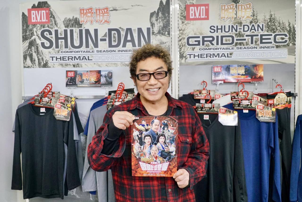 豊臣秀吉役としてご出演のコロッケさんが、人形町・株式会社フジボウアパレルさんのショールームを訪問されました。
