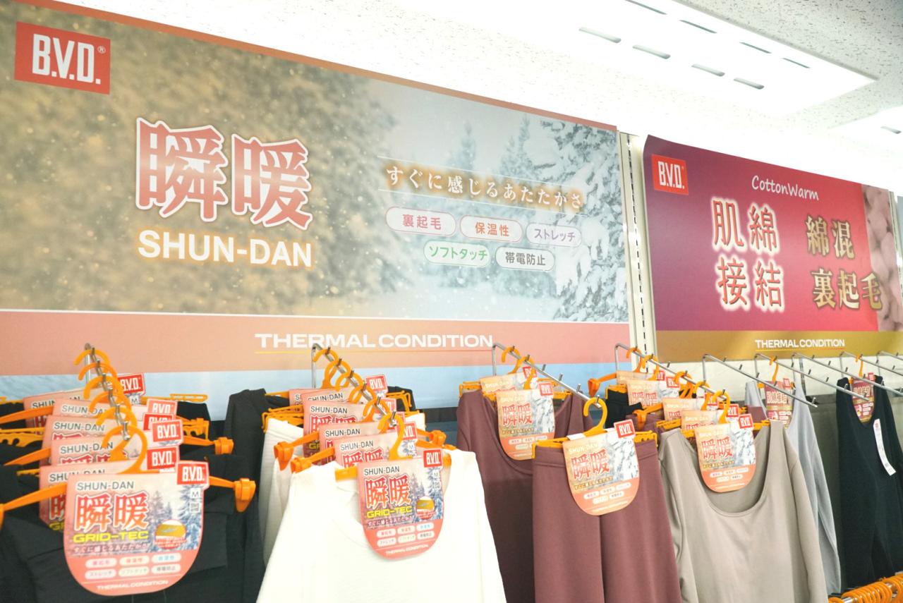 コロッケさんのレポート動画を劇場内で放映するほか、《瞬暖 SHUN-DAN》のサンプルを実際にお手に取ってご覧いただける特設ブースも展開予定! 女性向けラインナップも豊富に取り揃えておりますので、ぜひその目で着心地の良さをお確かめください!