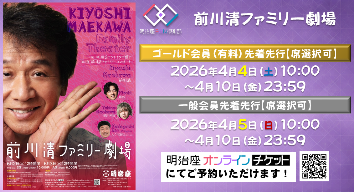 【4/4(土)~4/10(金)】『前川清ファミリー劇場』ゴールド会員(有料)・一般会員対象先着先行受付!